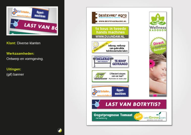 Banners zijn digitale advertenties op internetsites. Je kunt er snel en duidelijk je product of dienst mee kenbaar maken. Free Design maakt bewegende (gif) banners waarmee u de aandacht trekt en uw klanten naar uw site linkt of naar uw (fysieke) locatie verwijst.